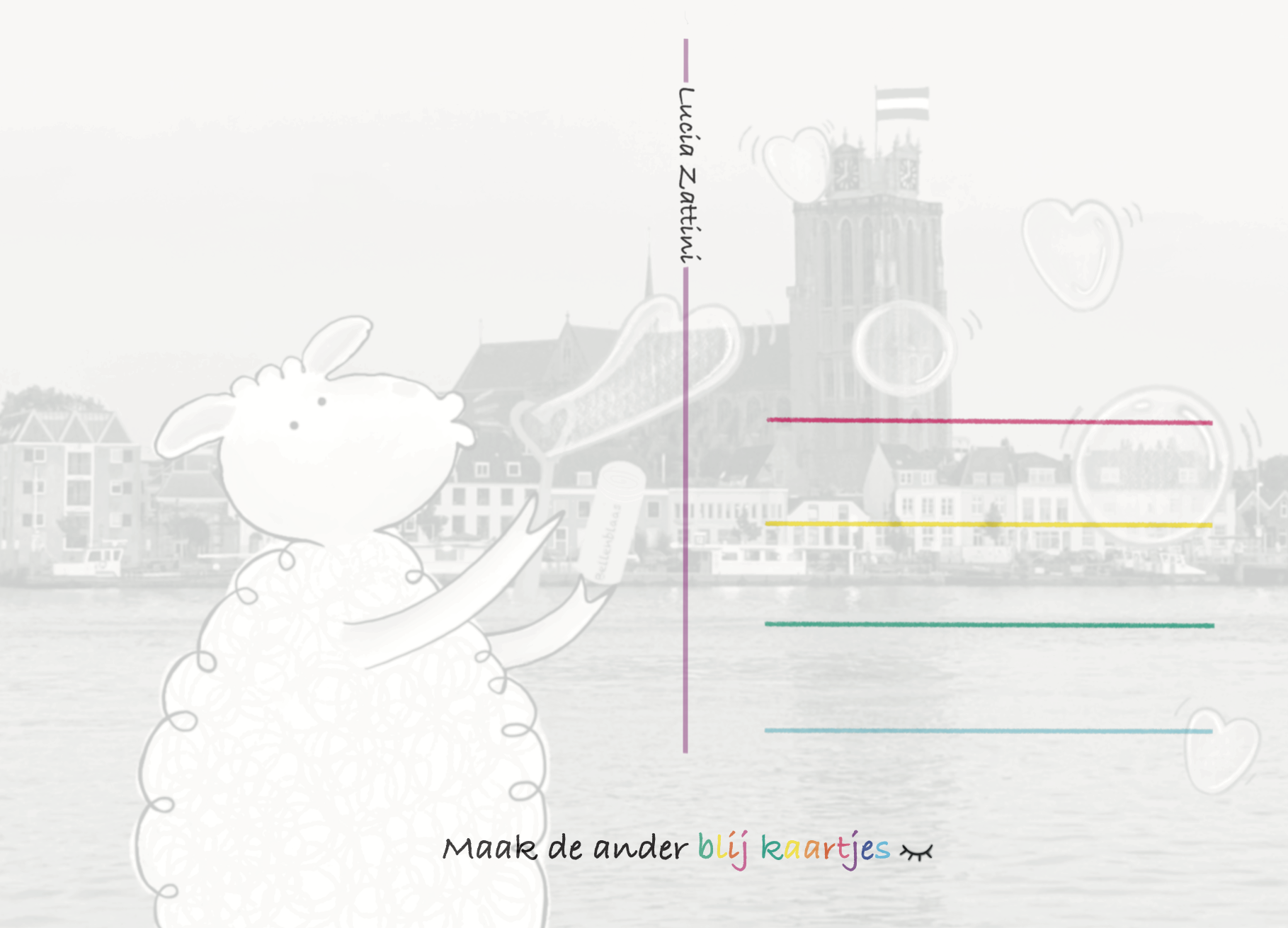 Schapen kaart schaap bellenblaas groetjes uit Dordrecht